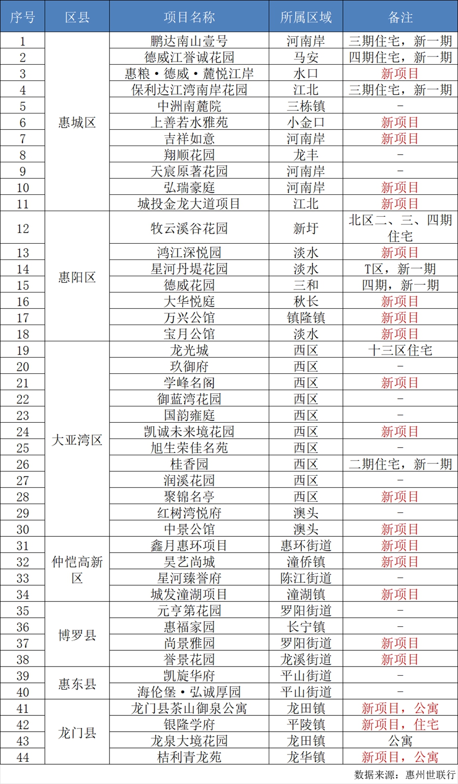 2024年惠州新房潛在供應(yīng)項目。數(shù)據(jù)來源:惠州世聯(lián)行
