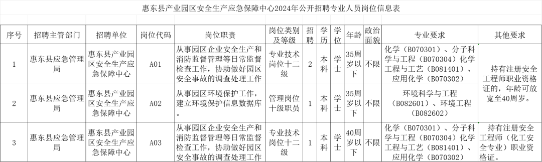 惠東縣產(chǎn)業(yè)園區(qū)安全生產(chǎn)應(yīng)急保障中心公開招聘專業(yè)人員