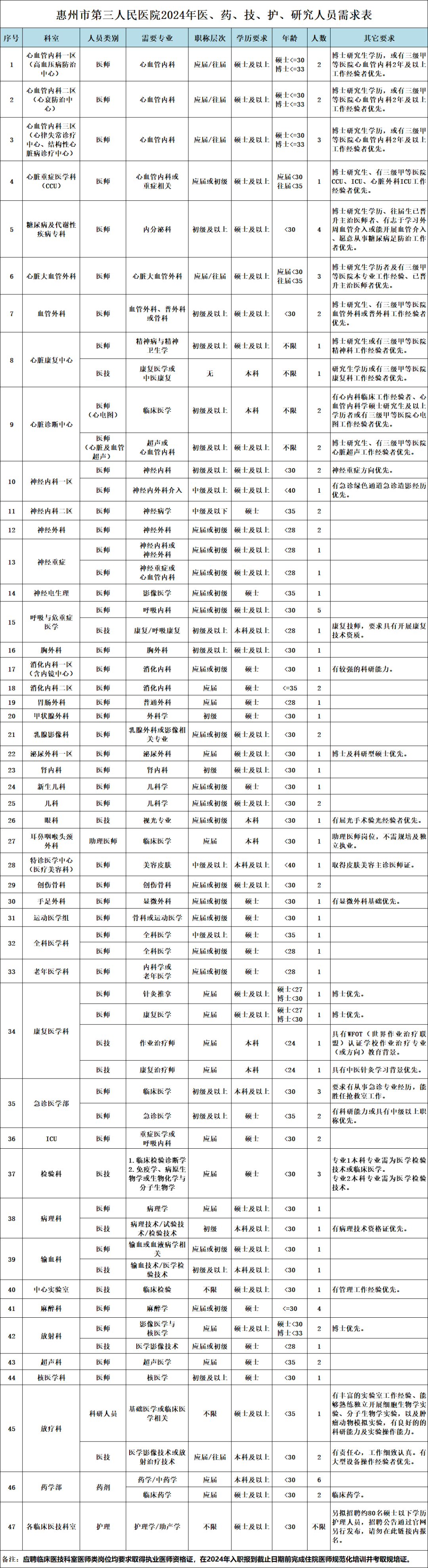 惠州市第三人民醫(yī)院(廣州醫(yī)科大學(xué)附屬惠州醫(yī)院)2024年人才招聘