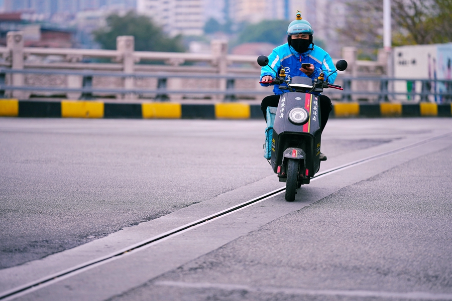 寒風(fēng)凌冽,外賣小哥送貨忙。