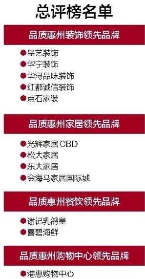 據(jù)了解,惠州總評(píng)榜作為惠州日報(bào)社為助推商業(yè)、家居行業(yè)發(fā)展舉辦的一大盛事,評(píng)選活動(dòng)已持續(xù)開展10多屆。一直以來,總評(píng)榜始終堅(jiān)持以服務(wù)消費(fèi)者為宗旨,站在消費(fèi)者立場,用消費(fèi)者的眼光選出值得信賴的企業(yè),備受消費(fèi)者和業(yè)內(nèi)人士認(rèn)可。