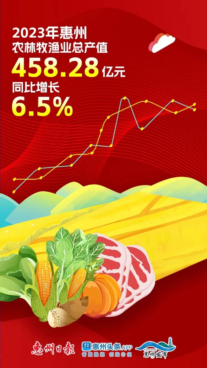 看縱深。農(nóng)業(yè)是強(qiáng)國(guó)之基。去年,惠州農(nóng)林牧漁業(yè)總產(chǎn)值458.28億元,同比增長(zhǎng)6.5%。