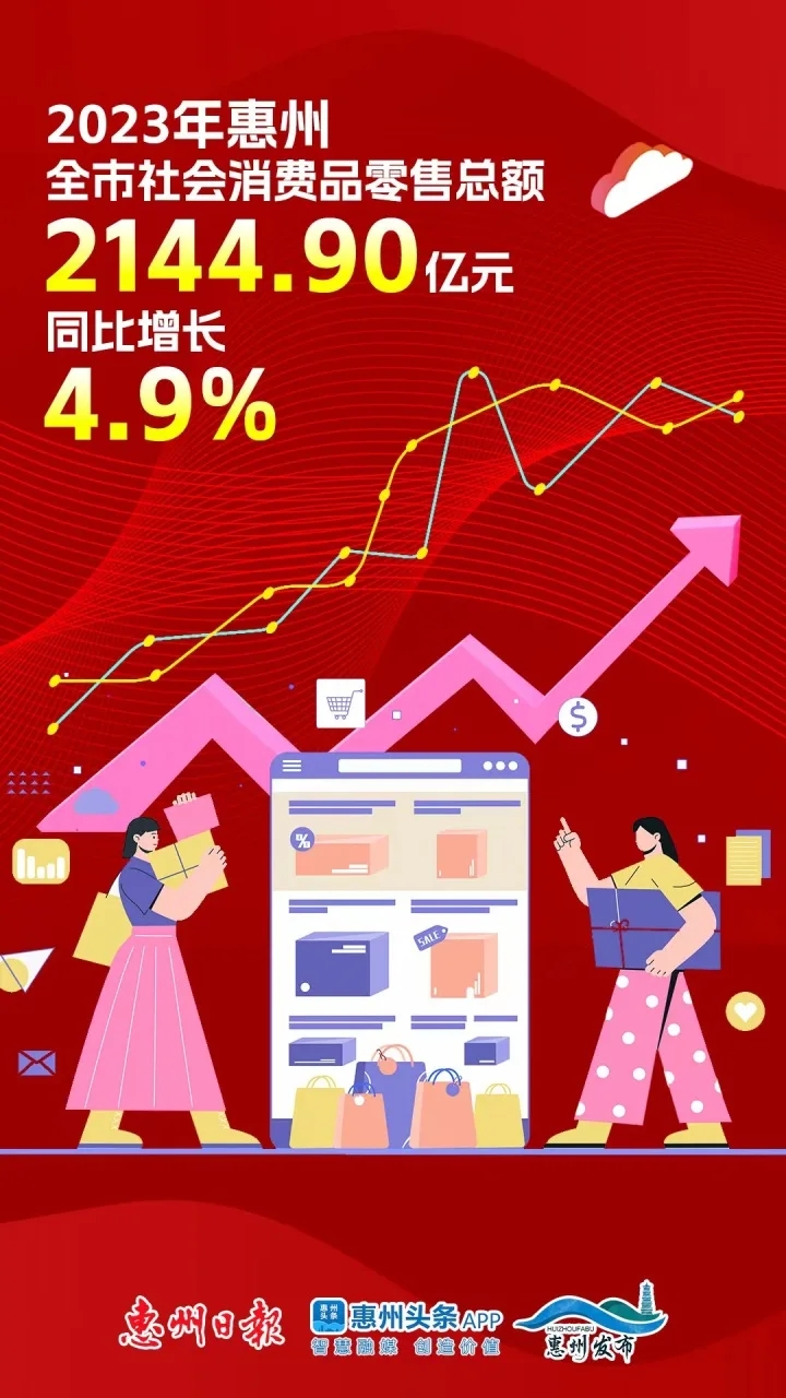 消費(fèi)方面。去年,全市社會(huì)消費(fèi)品零售總額2144.90億元,同比增長(zhǎng)4.9%,增速比前三季度上升0.5個(gè)百分點(diǎn)。從近兩年平均值來(lái)看,惠州社會(huì)消費(fèi)品零售總額增速4%,高于全省3.7%平均增速。