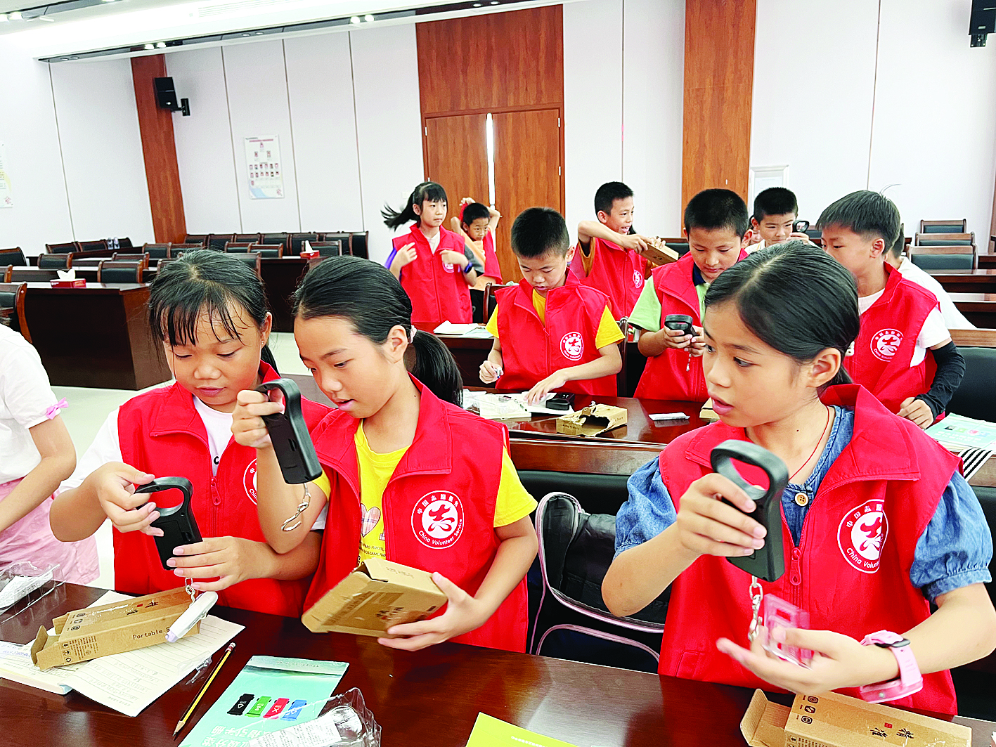 學生志愿者接受垃圾分類培訓。