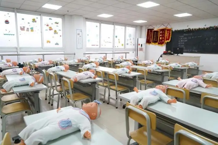 家政公司培訓(xùn)家政保潔員的課室。