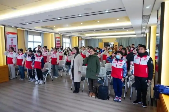 “我承諾:盡己所能,不計報酬,幫助他人,服務(wù)社會......”在楊芯蕾志愿者的帶領(lǐng)下,營員們緊握右拳,進(jìn)行志愿者宣誓。