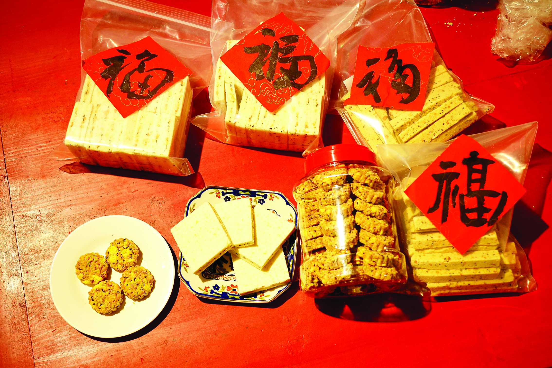 除了傳統(tǒng)食物,鄧英娜還嘗試自制各種點心、零食,包括沙琪瑪、太妃糖、杏仁脆脆餅、曲奇餅干等,讓孩子和親朋好友品嘗更豐富的“年味”!白约鹤龅脑牧峡梢园芽兀哺痈蓛粜l(wèi)生,孩子們都很愛吃,這也是屬于我們家獨特的過年氛圍。”她說,如今孩子們普遍不愁吃、不愁喝,因此她過年準備點心講究“小而精”,也會盡量想辦法豐富種類,給孩子提供不同的“年味記憶”;葜萑請笥浾哂舞