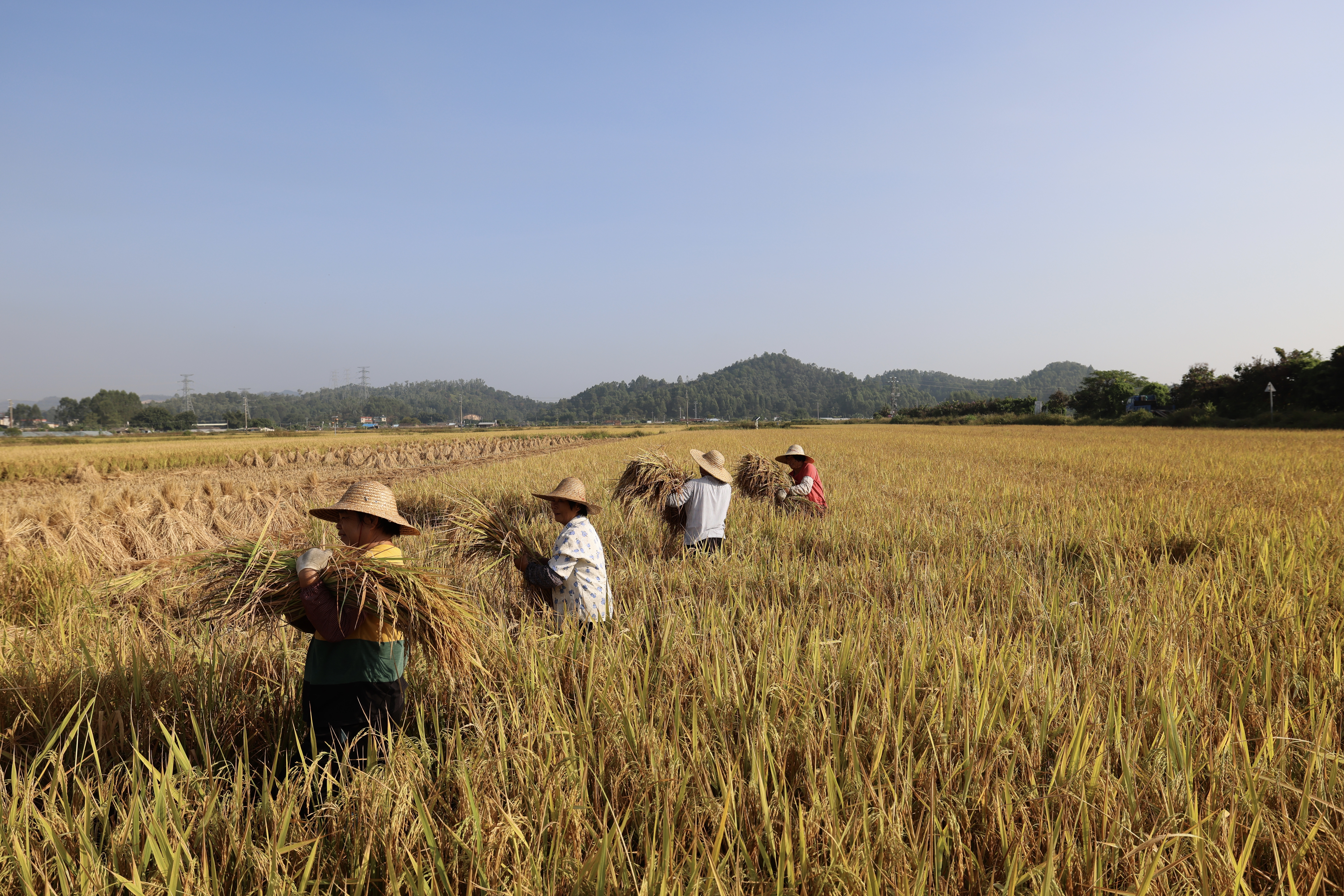 惠城區(qū)汝湖鎮(zhèn)圍仔村村民豐收富硒水稻。