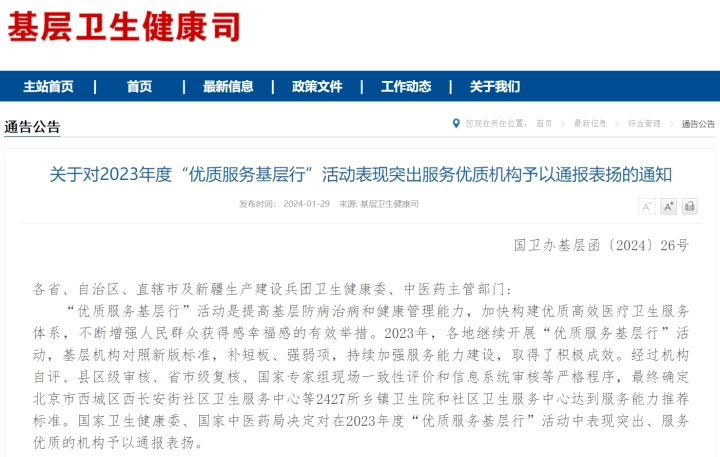國家衛(wèi)生健康委表示,希望受到表揚(yáng)的機(jī)構(gòu)珍惜榮譽(yù),再接再厲、再創(chuàng)佳績。各級(jí)衛(wèi)生健康行政部門、中醫(yī)藥主管部門要提高政治站位,繼續(xù)深入開展“優(yōu)質(zhì)服務(wù)基層行”活動(dòng),立足提供全方位全周期的基本醫(yī)療衛(wèi)生服務(wù),持續(xù)提升服務(wù)能力,不斷提高服務(wù)質(zhì)量,為全面推進(jìn)健康中國建設(shè)和鄉(xiāng)村振興作出新的更大貢獻(xiàn)。