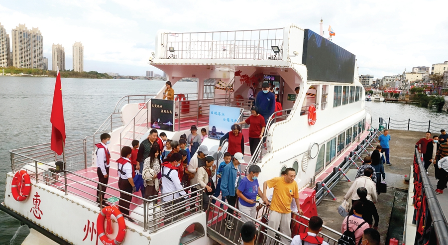 2月2日下午,市民通過預約免費乘坐游船,飽覽東江兩岸美景。2月2日至9日,“東江02號”游船作為擺渡船免費對游客開放,航線為惠州市區(qū)合江樓碼頭至江北渡口所江北碼頭,擺渡航班僅接待預訂乘客,乘客須通過美團平臺預訂航班,憑預訂碼免費乘坐所預訂擺渡航班。通航時間為每天下午3時開始,至晚上7時30分結(jié)束(9日晚上不安排航班),擺渡航線單程通行時間約15分鐘。