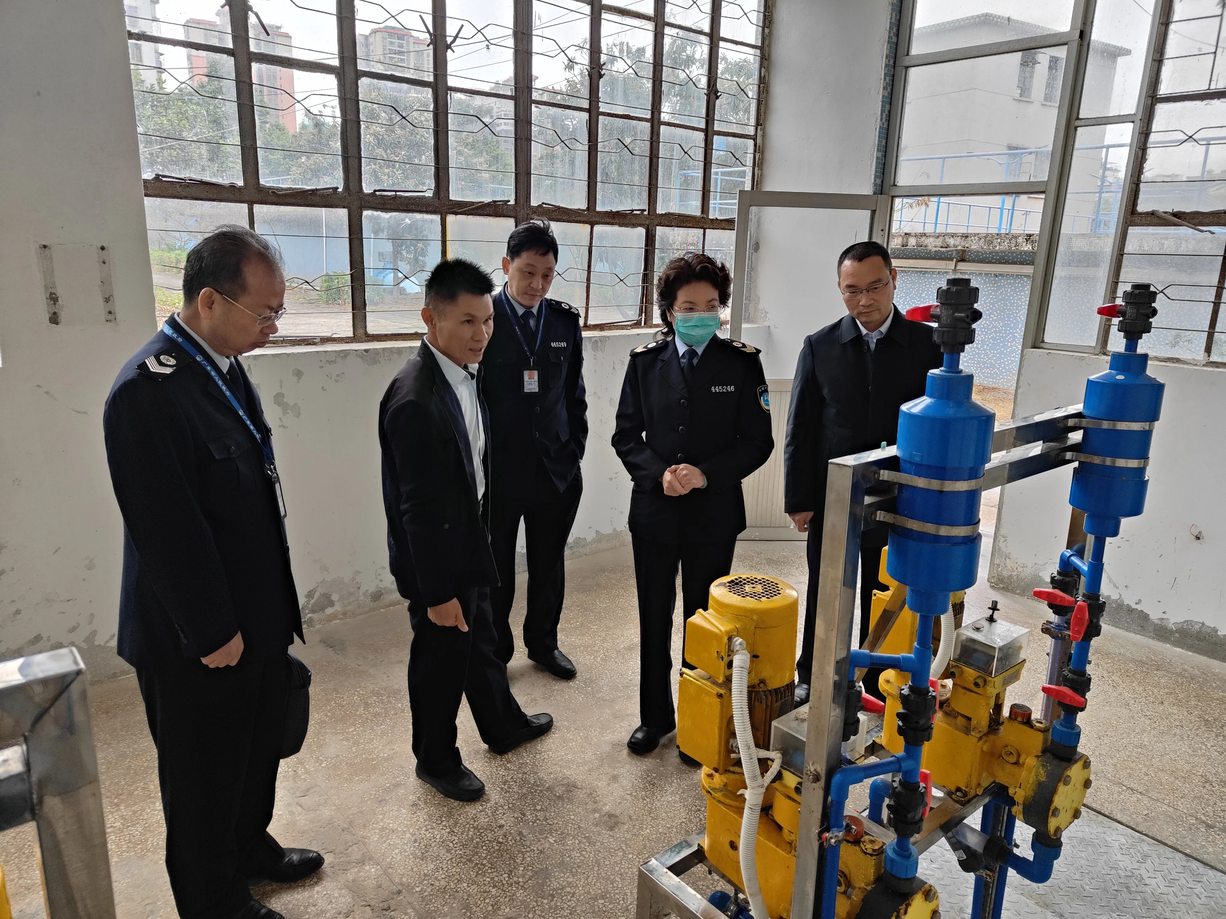 我市衛(wèi)生監(jiān)督機構(gòu)工作人員檢查水廠消毒設(shè)施運行情況。