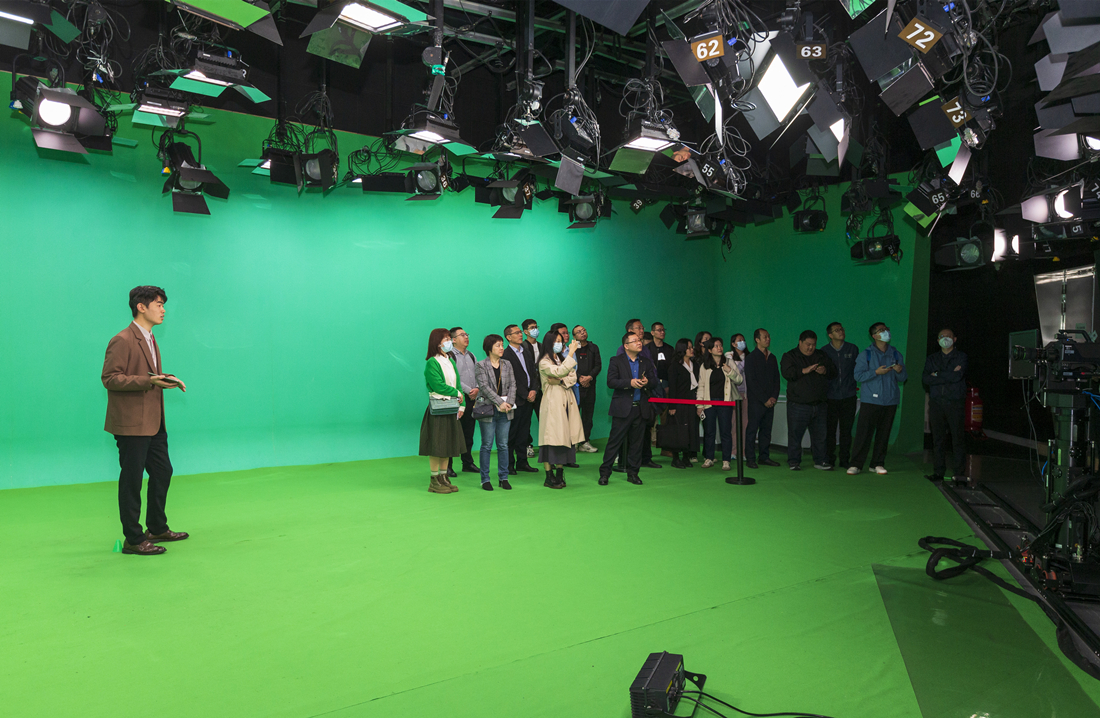 惠州市數(shù)字文化產(chǎn)業(yè)協(xié)會走訪調(diào)研團(tuán)參觀虛擬演播廳。