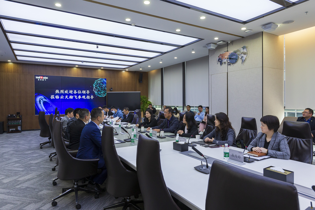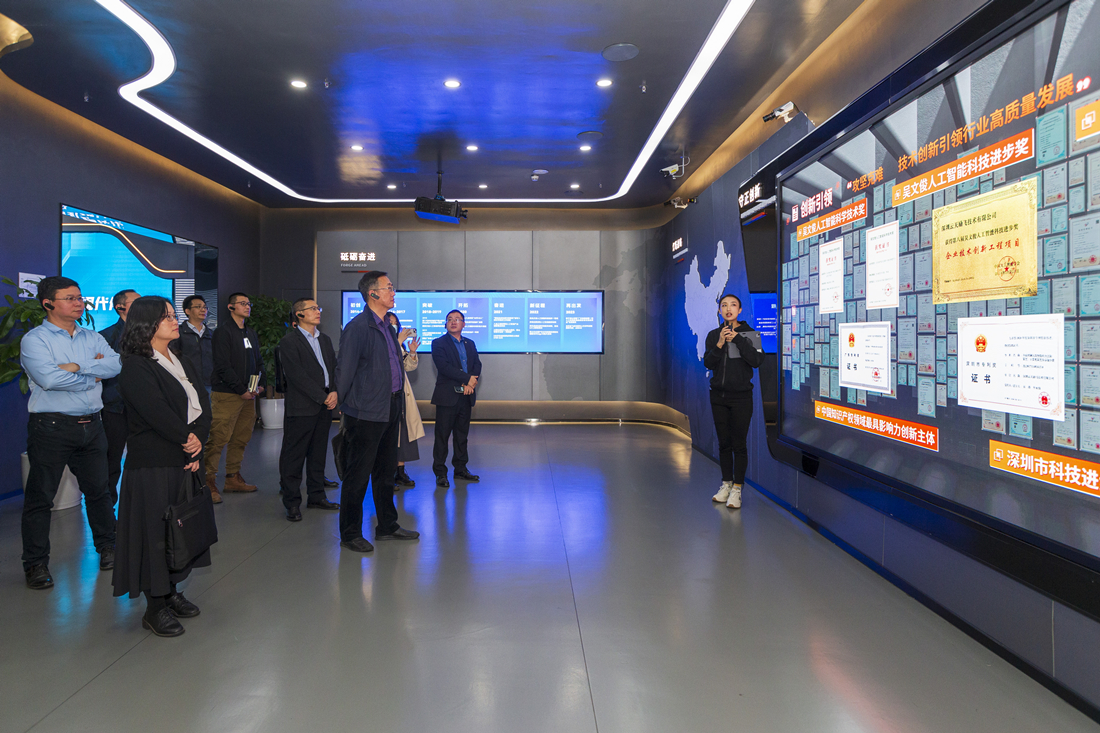 惠州市數(shù)字文化產(chǎn)業(yè)協(xié)會走訪調(diào)研團(tuán)聽取工作人員對云天勵飛的介紹。