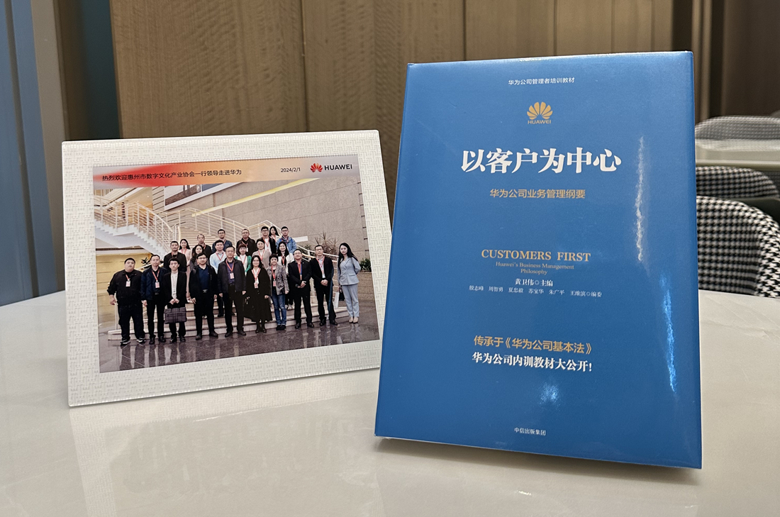 華為貼心地為走訪調(diào)研團(tuán)成員準(zhǔn)備了特色禮品:鑲了相框的合影和自選書籍。