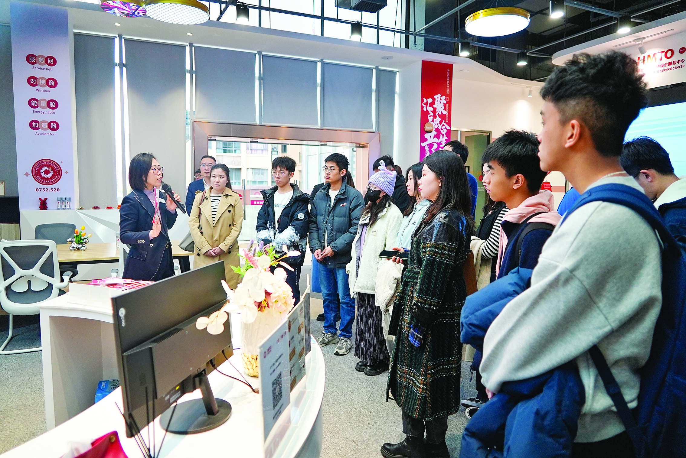 清華學子參觀惠州港澳臺僑綜合服務中心;葜萑請笥浾吡_劍業(yè) 攝