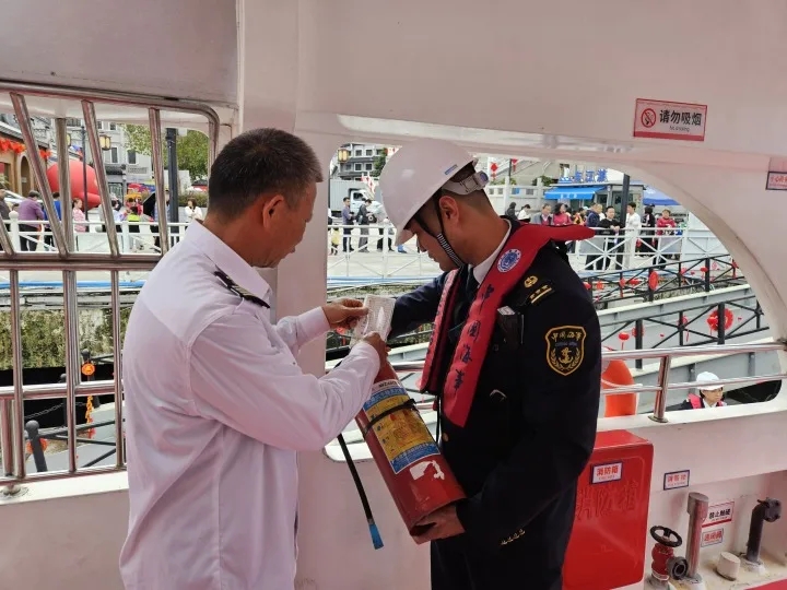 為保障活動期間旅客水上出行安全,東江海事處提前對“東江02”號游船開展安全檢查,重點檢查消防、救生、動力等關(guān)鍵性設(shè)備和船員關(guān)鍵性操作,對船舶相關(guān)證書、從業(yè)人員適任證書進行再次核對登記,認真排查船舶安全隱患,確保船舶適航、船員適任。