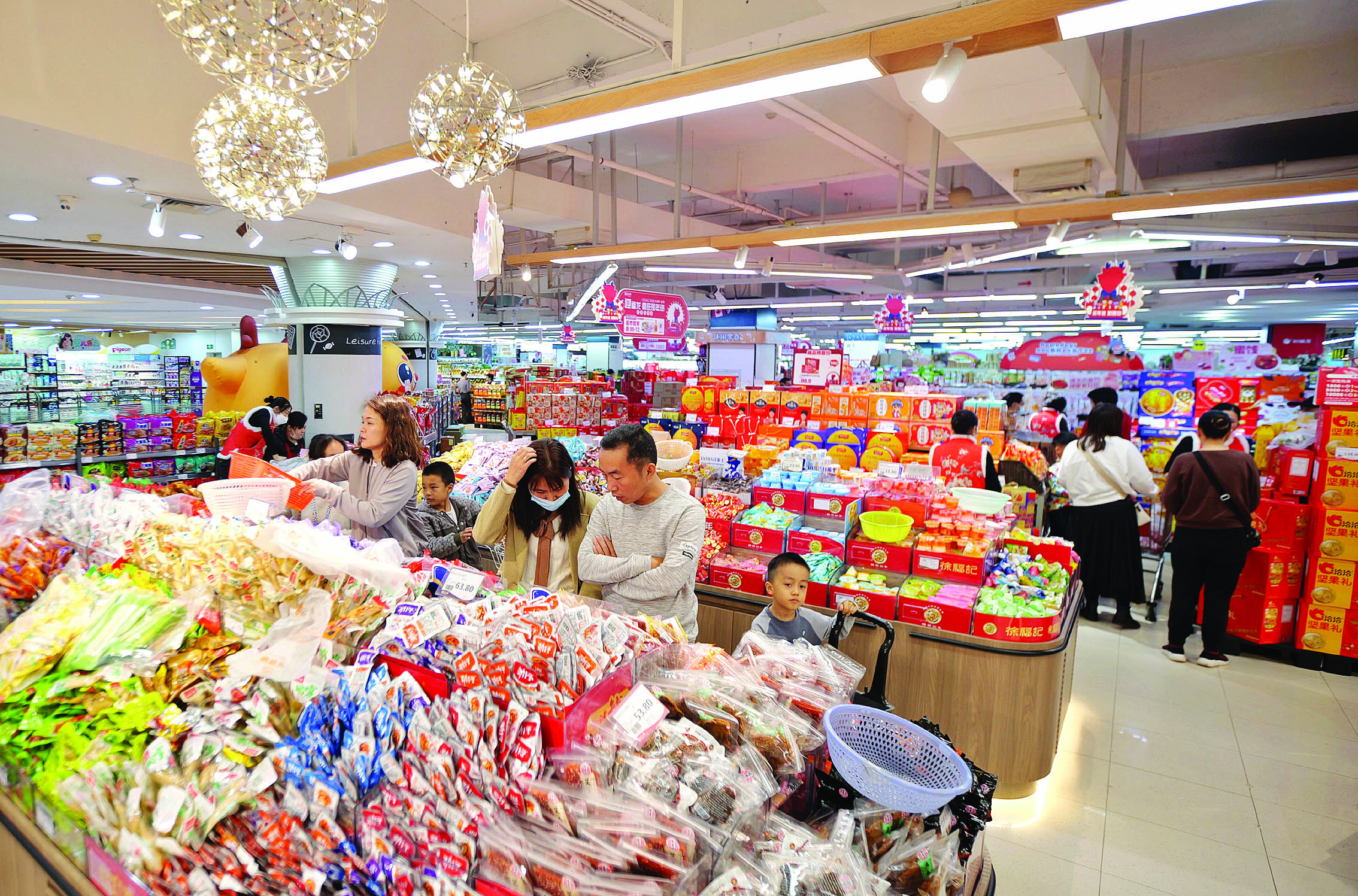市民在麗日購物廣場江北店購置年貨。惠州日報記者黃鑫威 攝