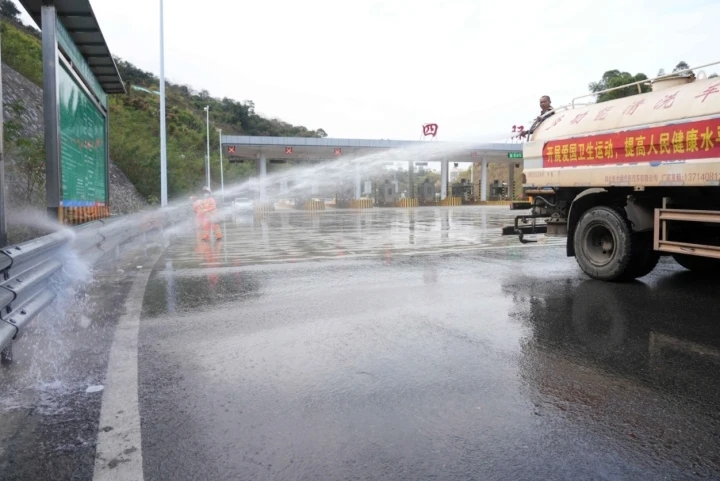 2月5日,在白云前收費(fèi)站,惠州市交通運(yùn)輸局仲愷區(qū)分局,區(qū)環(huán)衛(wèi)部門組織人員對(duì)高速公路收費(fèi)站出入口護(hù)欄、圍欄進(jìn)行集中清洗。