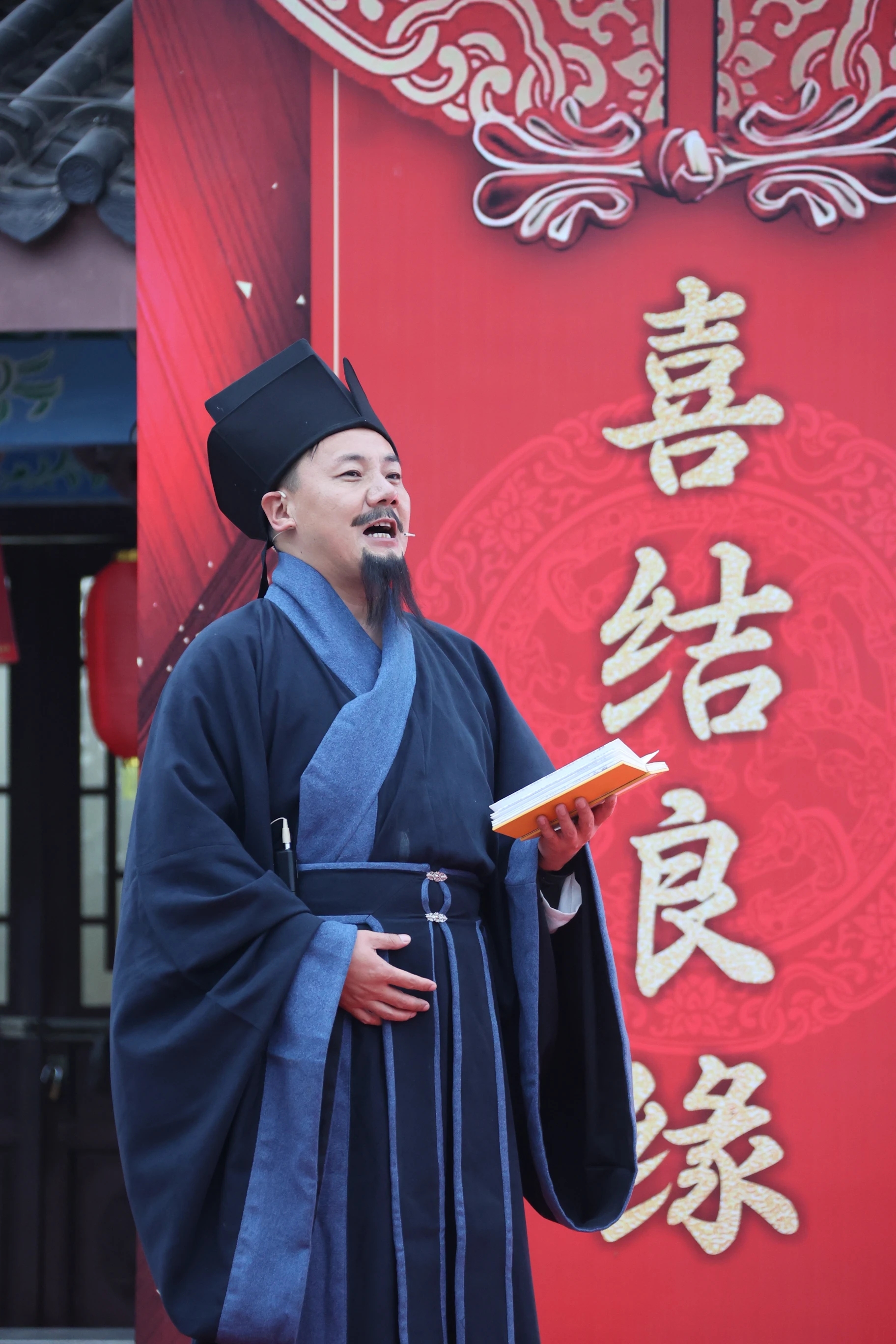 婚禮秀現(xiàn)場,蘇東坡扮演者與觀眾互動。