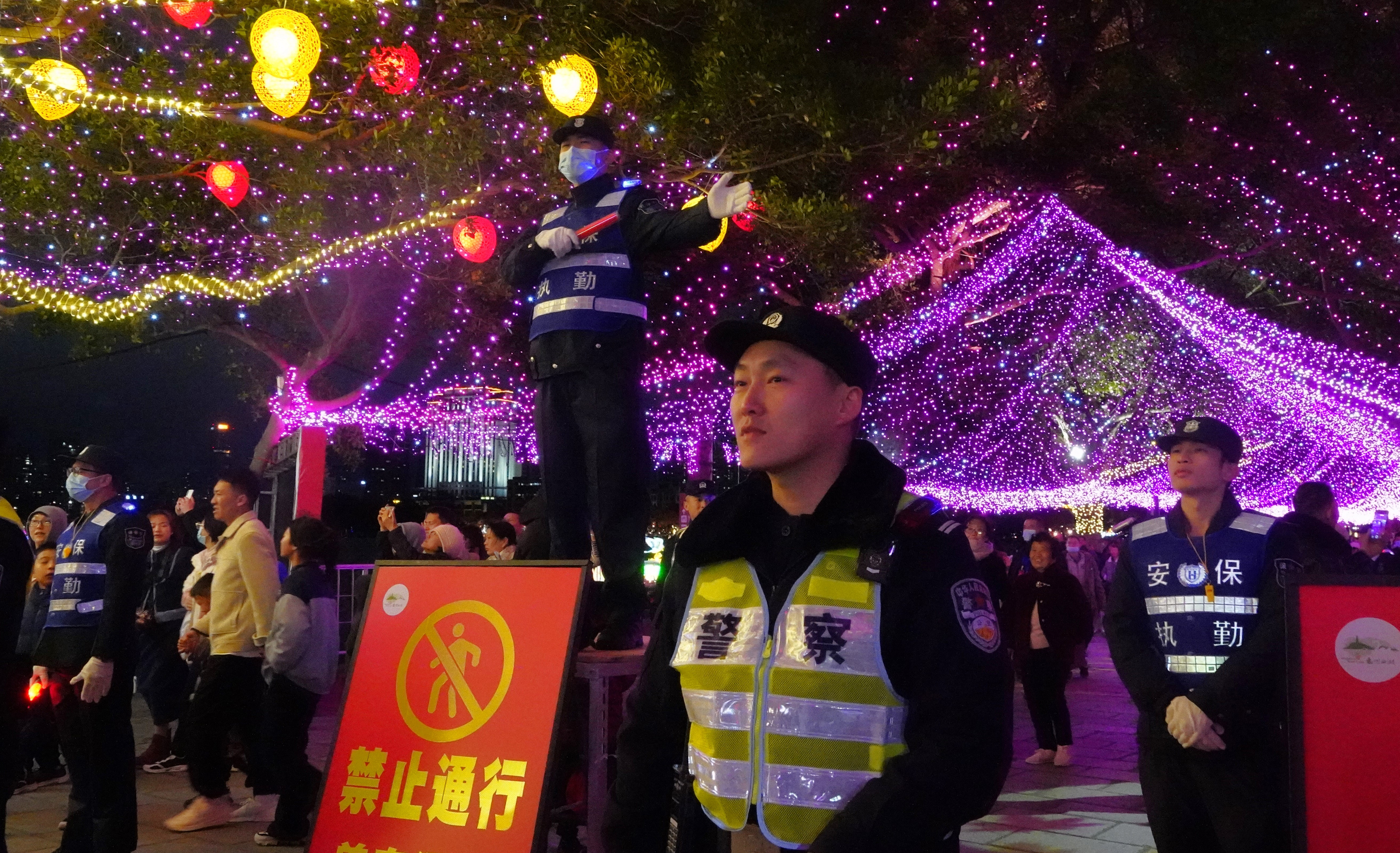 春節(jié)假期,民警在惠州西湖景區(qū)維持秩序,讓市民安全有序賞花燈。