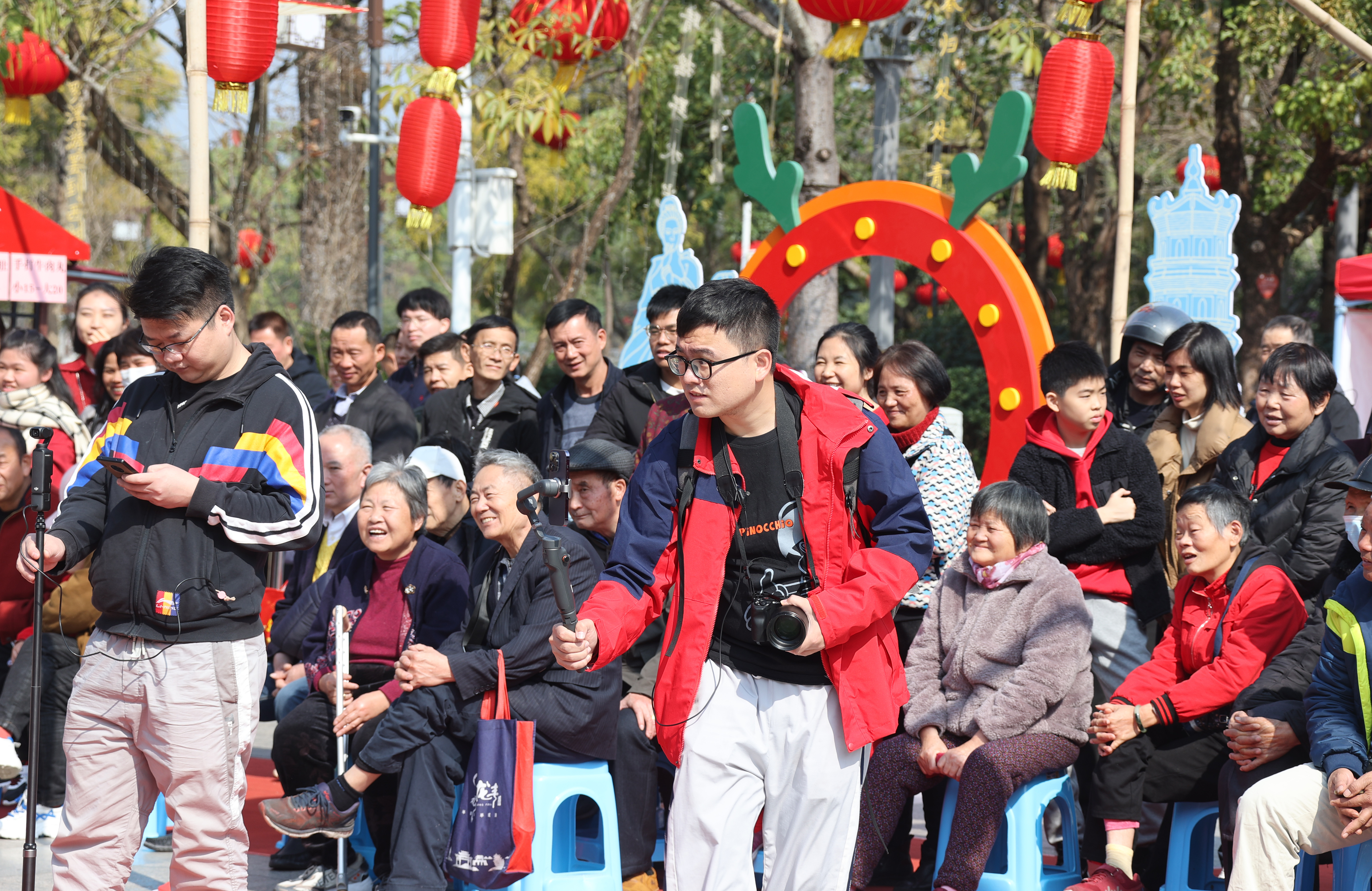記者現(xiàn)場采訪惠州西湖宋式婚禮秀。