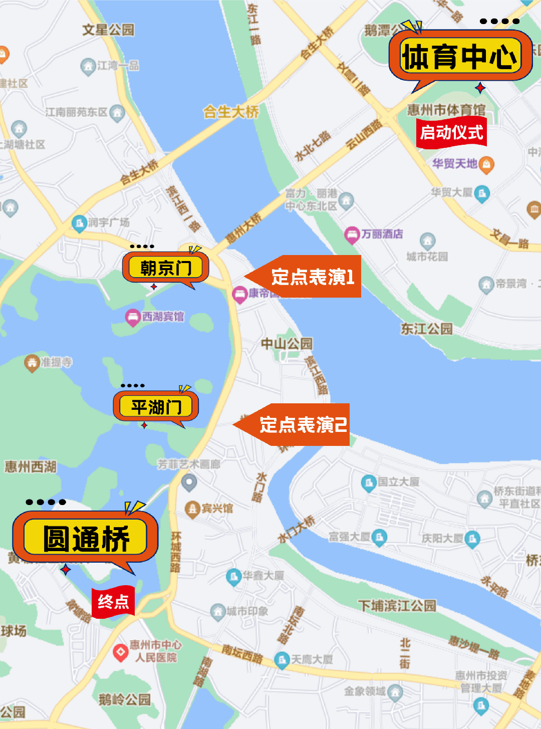 圖1 “舞動(dòng)中國龍——全國龍舞大巡游暨2024廣東惠州多彩非遺鬧元宵活動(dòng)”期間臨時(shí)交通管制路段示意圖