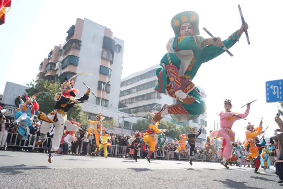 巡游沿途還設(shè)有英歌、醒獅等定點(diǎn)演出
