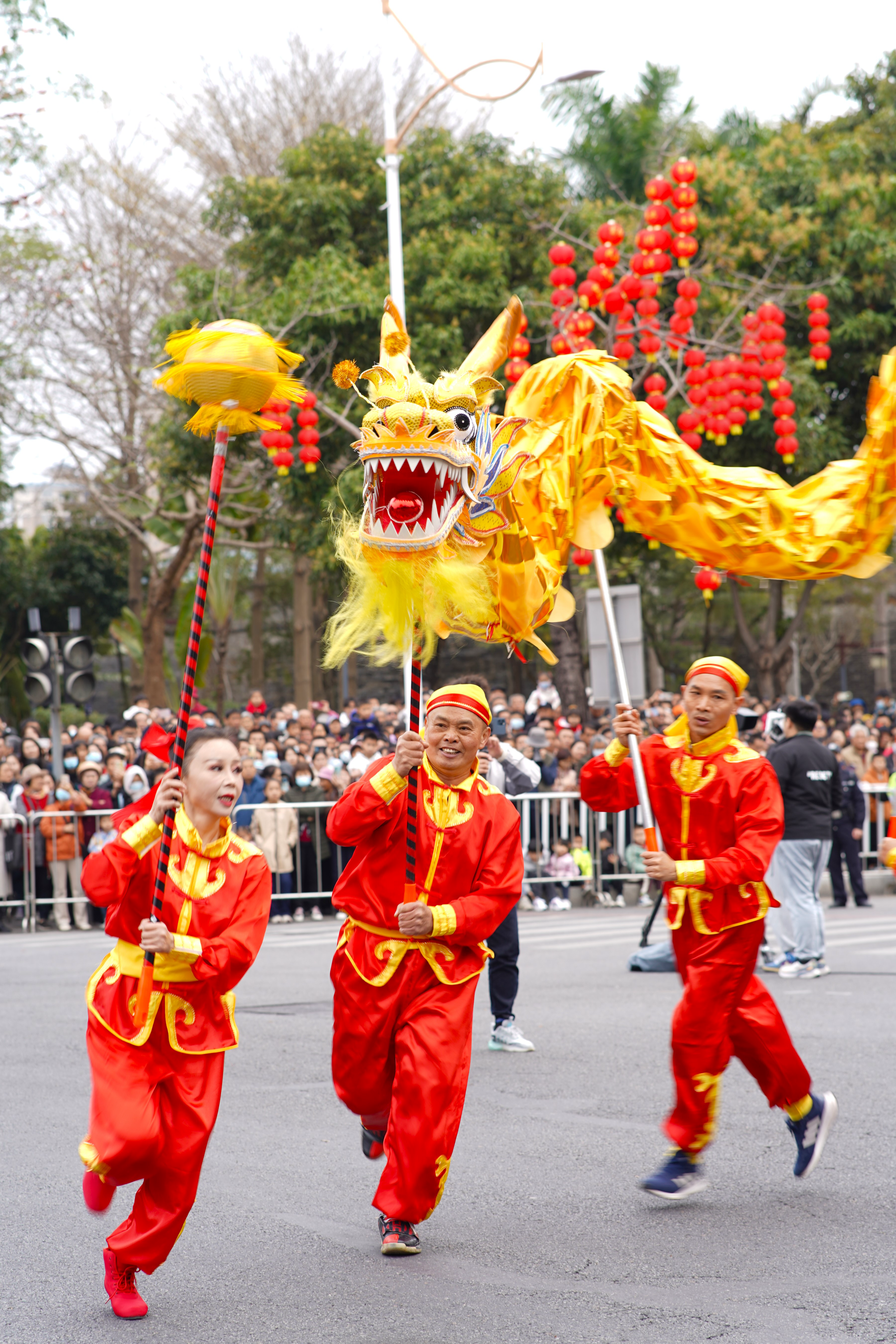 2024年春節(jié)期間,為營造歡樂祥和的節(jié)日氛圍,文化和旅游部非物質(zhì)文化遺產(chǎn)司發(fā)動各地廣泛開展“舞動中國龍”——龍舞大巡游活動。該活動是文化和旅游部“歡歡喜喜過大年”2024年春節(jié)主題活動重要內(nèi)容之一。據(jù)初步統(tǒng)計,各地共舉辦龍舞類非遺項目傳承實踐活動近300場!拔鑴又袊垺薄埼璐笱灿位顒尤珖鲿䦂鲈O在廣東惠州,主會場活動包括“舞動中國龍”——龍舞大巡游和“多彩非遺鬧元宵”展演。