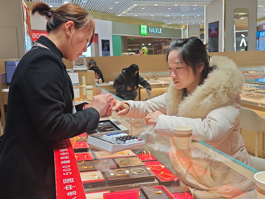 “趁著手頭有積蓄,買一個手鐲,國潮風(fēng)的款式很符合我的審美。”張紅瑜是一名80后媽媽。她說,買金飾不僅美了自己,今后還可以傳承給女兒,寓意也很美好。