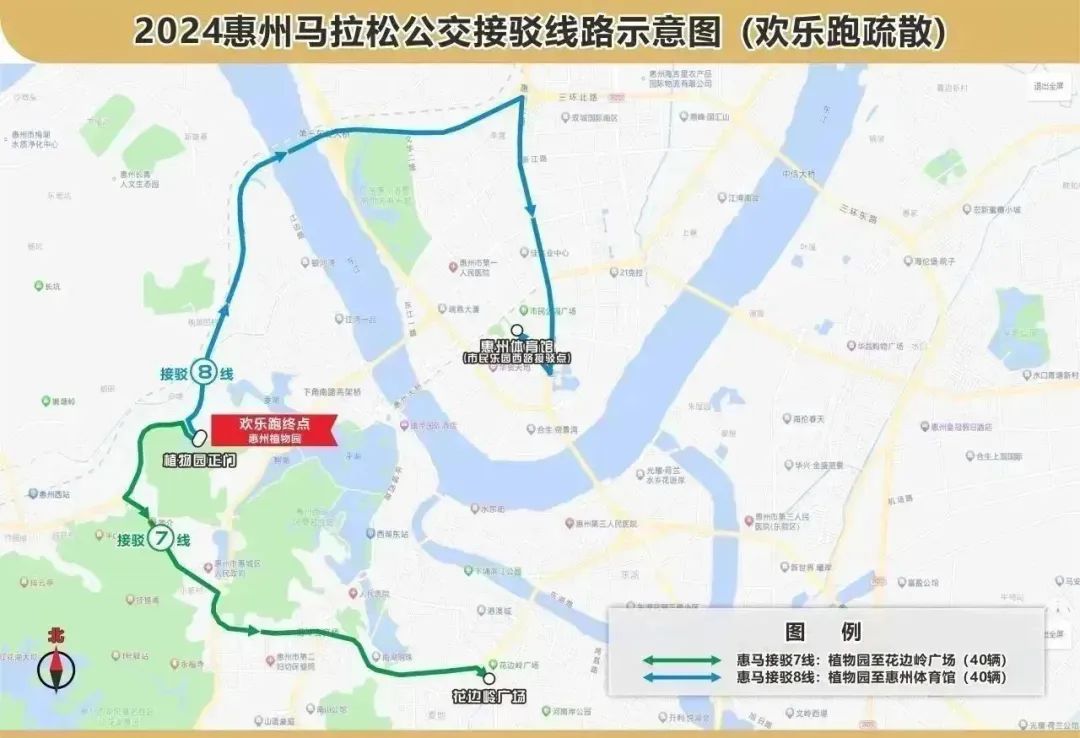 線路走向:由植物園經(jīng)惠新大道、第三東江大橋、三環(huán)北路、惠州大道、惠州體育館(市民樂園東路)