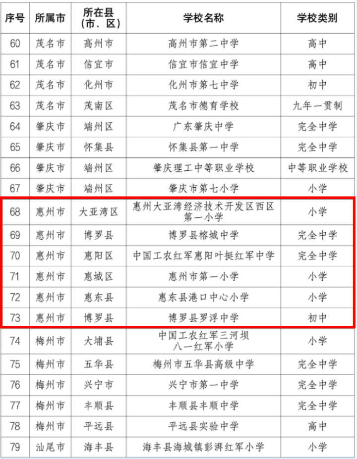 惠州市6所學(xué)校入選。