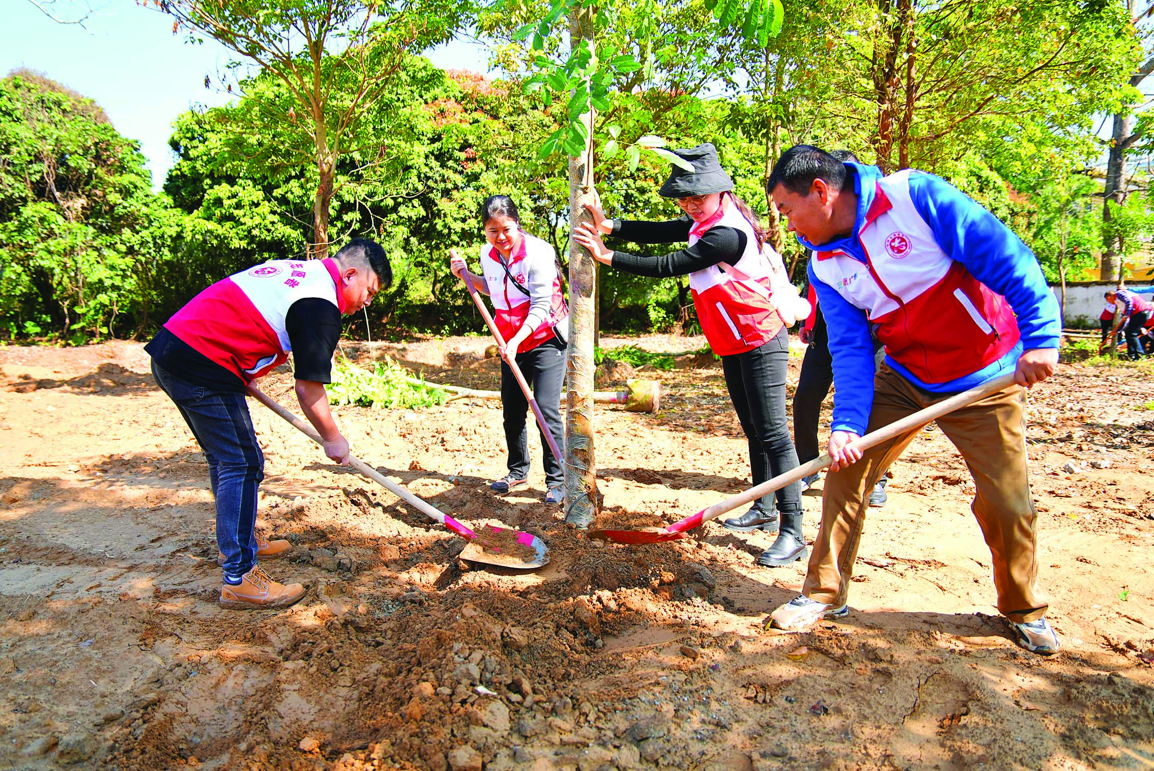 植樹(shù)現(xiàn)場(chǎng),300多人熱情高漲、干勁十足,大家分工合作,揮鍬鏟土、扶苗填坑、踏土夯苗,有條不紊地完成每道工序,齊心協(xié)力種下一棵棵希望之樹(shù)。