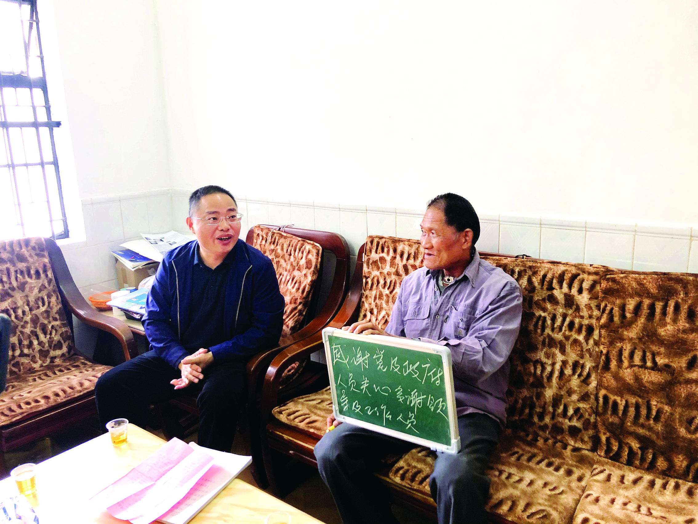 惠陽區(qū)良井鎮(zhèn)一位退役老兵患咽喉癌,多次住院進行手術(shù)并長期化療,醫(yī)療費用花費巨大。2020年10月,羅元生在日常的走訪中了解到該老兵的病情,多次入戶了解詳情,幫助他申請廣東省退役軍人應(yīng)急救助資金5.9萬元。該老兵因患咽喉癌導(dǎo)致不能說話,用粉筆一筆一畫用力地在寫字板留下無聲的感謝。