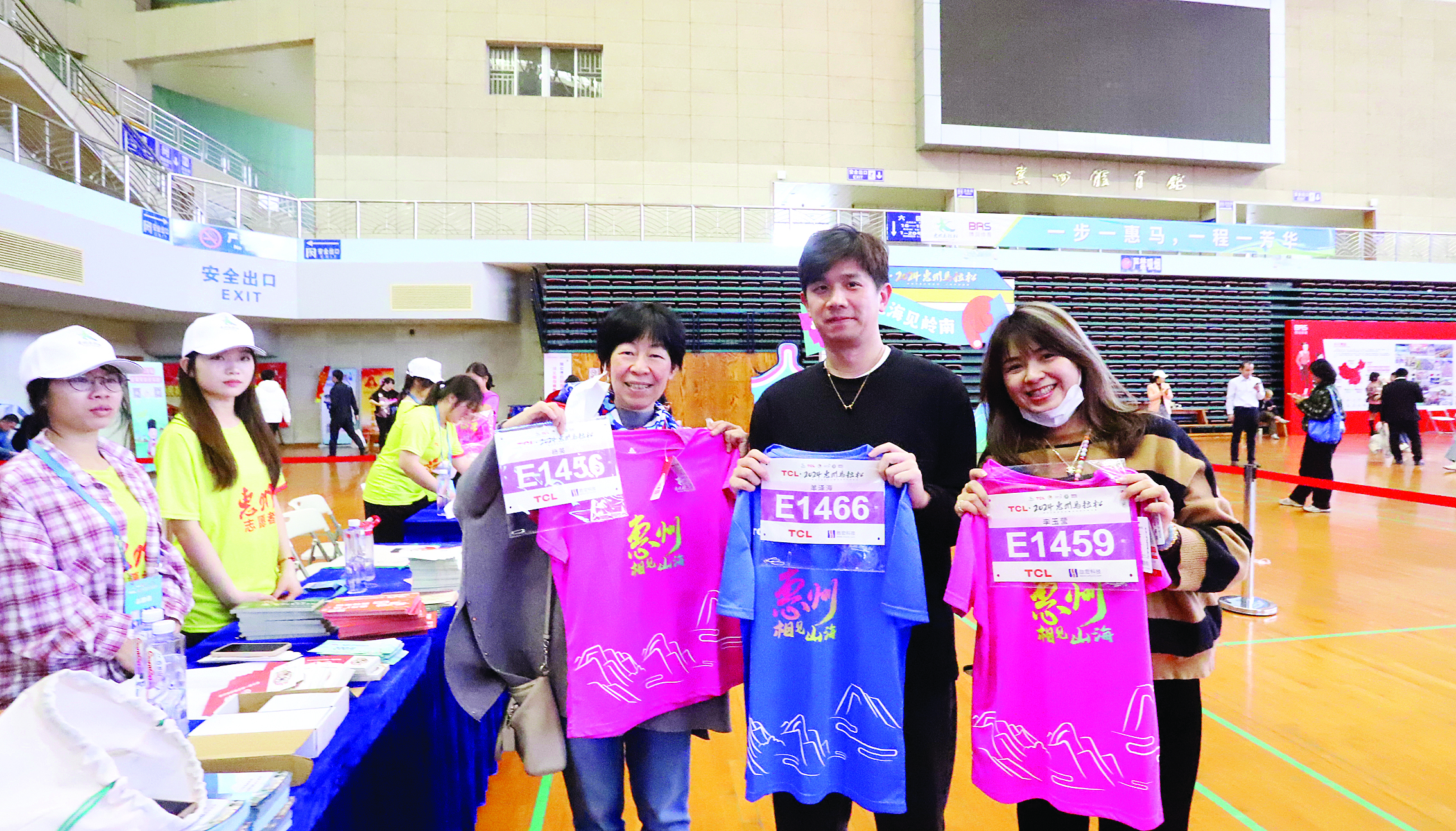 3月15日上午,惠州首屆馬拉松參賽選手領(lǐng)到參賽包并展示參賽服;葜萑請笥浾哏姇承 攝