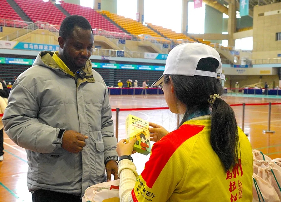 加納跑友正在領(lǐng)取“惠馬”參賽包。