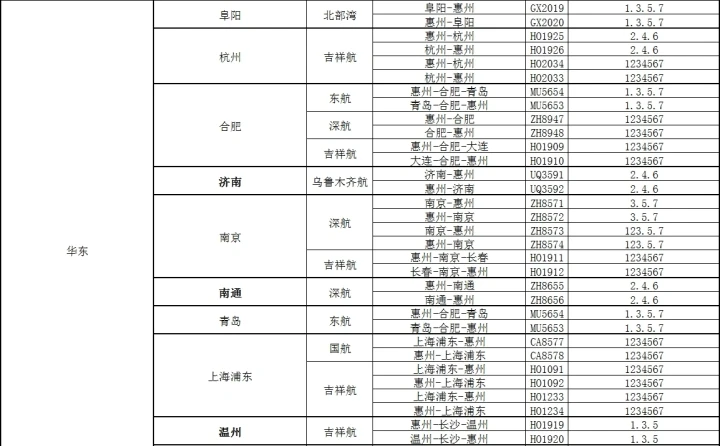 (11)合肥:每天2班,周1357每天最高可達(dá)到3班