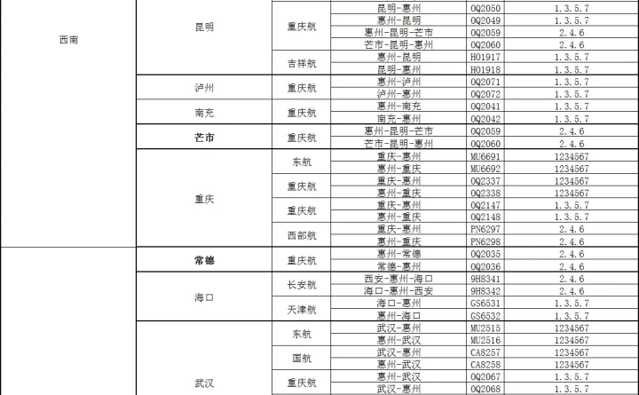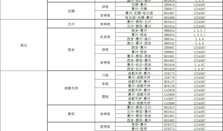 。10)西安:每天3班,周2467每天最高可達(dá)到4班
