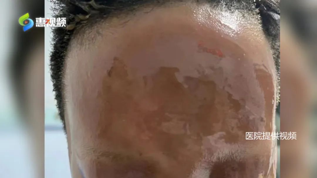 醫(yī)生介紹,患兒的頭面部約有8%面積被燒傷脫皮,多處出現(xiàn)紅腫、水泡、滲液,而且頭發(fā)、眉毛、眼睫毛都燒焦了,若不是孩子第一反應(yīng)閉上了眼睛,眼珠子就遭殃了。