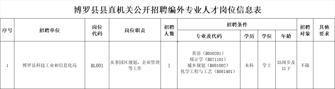 博羅縣科技工業(yè)和信息化局公開招聘編外專業(yè)人才