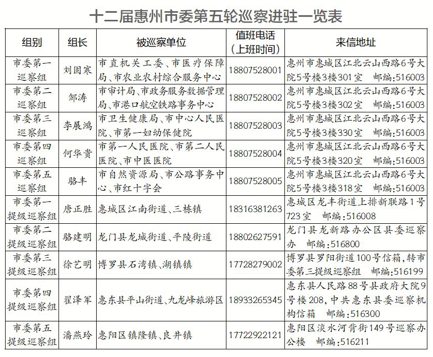 惠州日報訊 (記者袁暢 通訊員惠巡辦)根據(jù)惠州市委巡察工作統(tǒng)一部署,截至3月26日,10個市委巡察組完成十二屆惠州市委第五輪巡察進駐工作。被巡察單位分別召開巡察進駐動員會。會前,各市委巡察組向被巡察黨組織主要負(fù)責(zé)人通報了有關(guān)工作安排;會上,各組長作了動員講話,對高質(zhì)量開展巡察工作提出明確要求。
