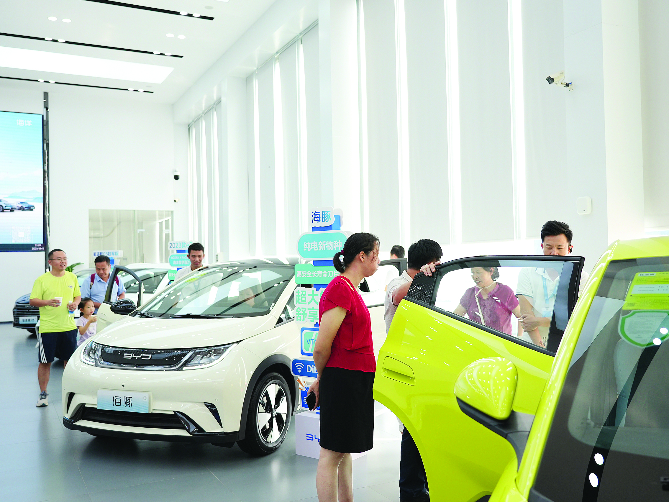 “今年比亞迪推出兩款7.98萬的新能源車型后,各門店銷售非;鸨,僅惠州惠迪10多個門店每周銷量就有300多輛!被葜菔衅嚵魍ㄐ袠I(yè)協(xié)會有關負責人介紹,以比亞迪、問界為代表的新能源汽車企業(yè)已成為拉動惠州社會消費品零售的主力軍。“2023年惠州市新能源汽車銷售占比攀至40%,意味著每賣出10輛車就有4輛是新能源汽車。”