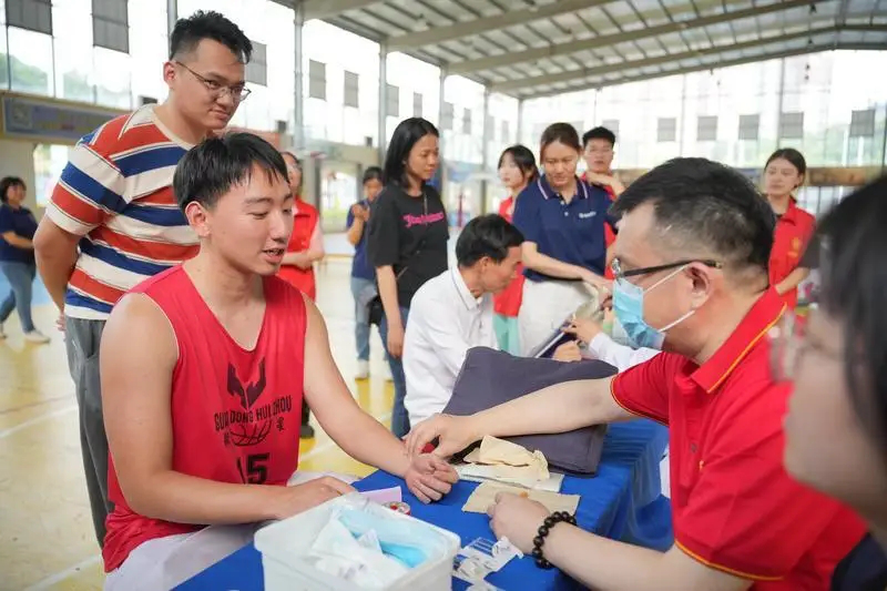 精彩的講座和籃球演示互動結(jié)束后,孟衛(wèi)紅現(xiàn)場開展健康義診,義診期間,他耐心向大家宣傳健康科普知識,并針對部分有亞健康問題的群眾開展針灸治療等健康服務(wù)。