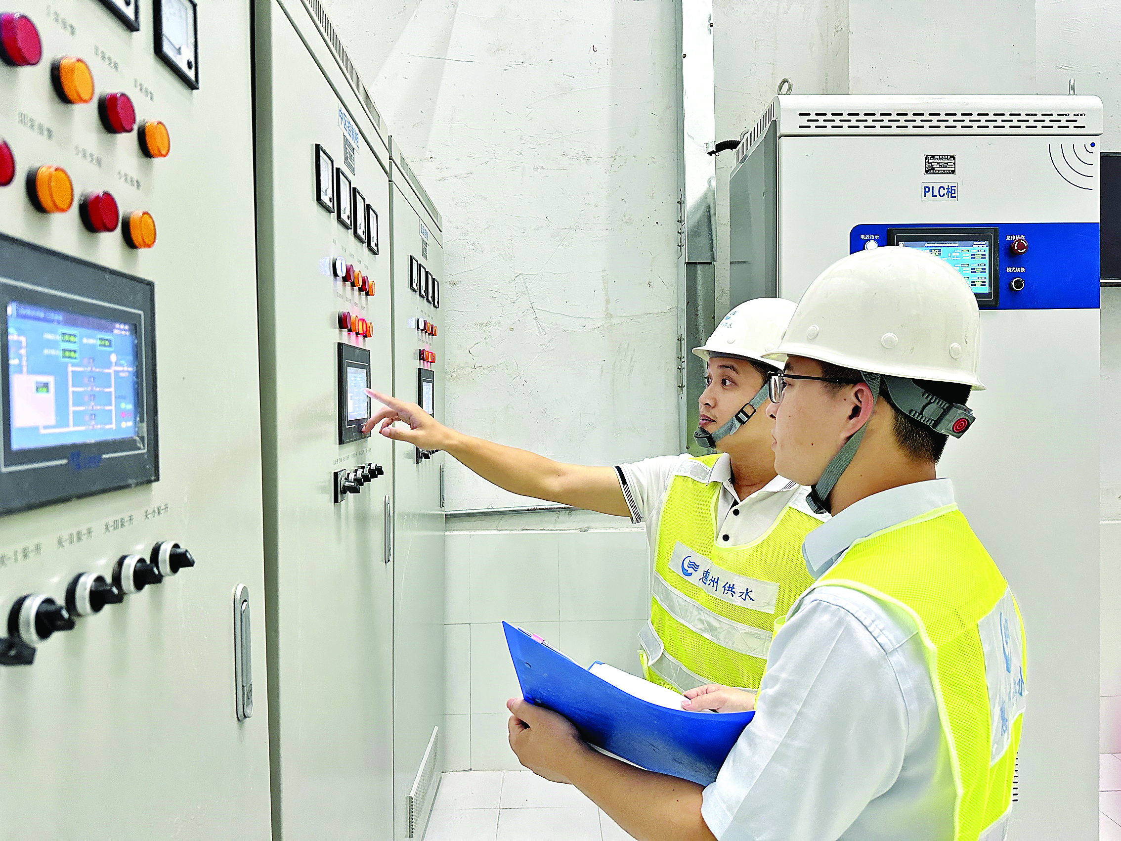 工作人員對(duì)供水設(shè)施進(jìn)行維護(hù)。