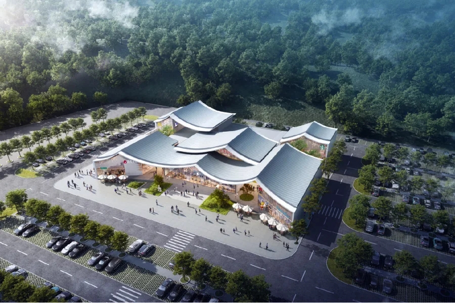 惠州西服務區(qū)總體建筑面積約1.2萬平方米,分為東、西服務區(qū)。項目借鑒豐湖書院的文化內(nèi)涵和建筑特色,打造全省獨有的書院主題服務區(qū)。服務樓結(jié)構(gòu)靈感源自書院及惠州傳統(tǒng)民居,以“啟惠之書”為主題,屋頂設計為翻開的書本形態(tài),主體結(jié)構(gòu)采用木格柵、鋁板、金屬板屋面等材料,整體視覺明亮通透,具有書院風格的獨特韻味。
