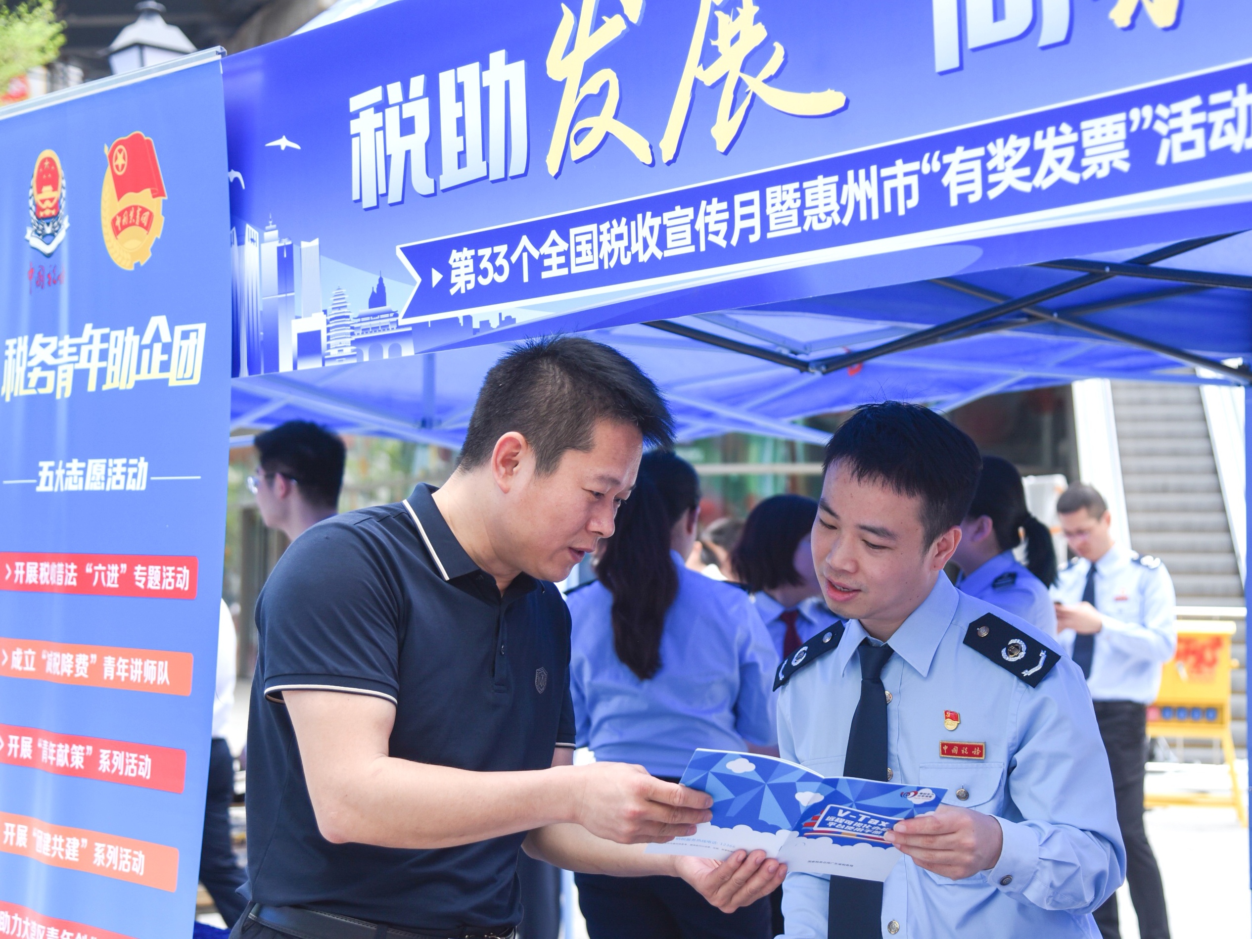 “‘有獎發(fā)票’活動是為接下來稅收宣傳月各項活動‘打頭陣’!被顒蝇F(xiàn)場,惠州市稅務(wù)局黨委書記、局長劉柯表示,今年惠州稅務(wù)部門將圍繞“稅助發(fā)展 向新而進”這一主題,繼續(xù)開展便民辦稅春風(fēng)行動,為全市重點項目、重點企業(yè)提供一體化、全周期稅務(wù)服務(wù),助力打造一流營商環(huán)境。同時,常態(tài)化開展“稅費服務(wù)體驗師”“稅法進校園”“稅法伴我行”等主題宣傳活動,讓更多群體感受到稅費服務(wù)新氣象。
