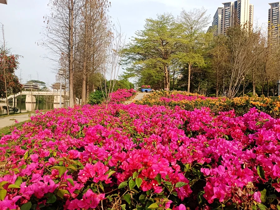 “爛漫的春天時節(jié),怒放的簕杜鵑令人欣喜不已!”市民陳女士說,看到金山湖公園及我市一些公園景區(qū)、路邊到處是競相盛放的花朵,一簇簇的簕杜鵑姹紫嫣紅,為惠州增添了生機和色彩,幸福感滿滿。