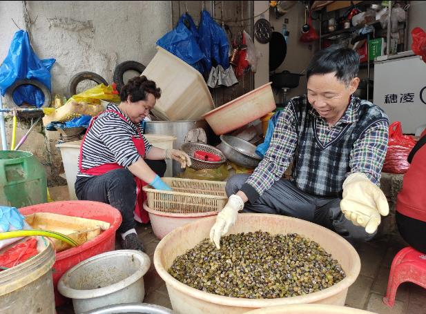靠著以前跑船、耙蜆積累的人脈,吳偉國對東江蜆的貨源較為熟悉,將生意平穩(wěn)開展。店內(nèi)的東江蜆,一般按個(gè)頭品質(zhì)論斤售賣,一斤價(jià)格從五元到八元不等,每天能賣個(gè)五六百斤,遇到周末、節(jié)假日,能賣到七八百斤。