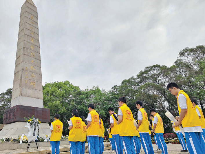 4月4日,惠城區(qū)豐山公園內(nèi)的東江人民革命烈士紀(jì)念碑前迎來祭掃高峰,許多市民或單位自發(fā)前往祭掃,緬懷革命先烈的豐功偉績(jī)。一批批市民懷著對(duì)革命英烈的崇高敬意,敬獻(xiàn)鮮花,默哀致敬。