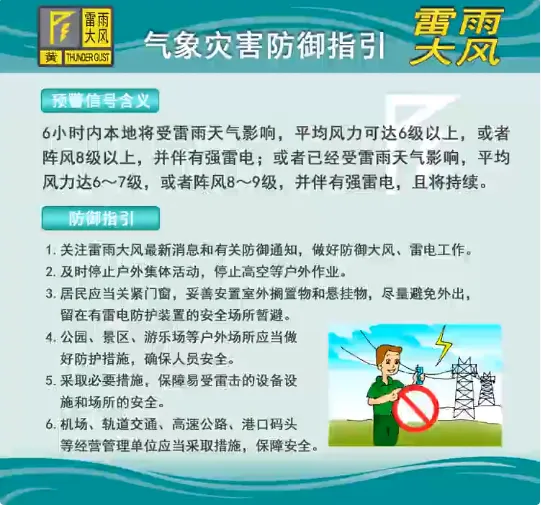 雷雨大風(fēng)黃色預(yù)警信號