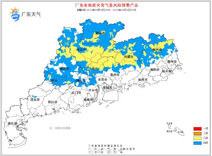 河源連平縣、東源縣,肇慶懷集縣,清遠(yuǎn)清城區(qū)、連山壯族瑤族自治縣、連南瑤族自治縣,韶關(guān)樂昌市,局地發(fā)生山洪災(zāi)害可能性較大(黃色預(yù)警)。